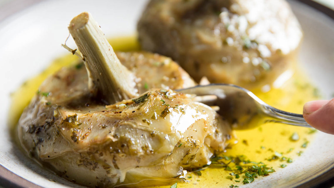 Ricetta Carciofi Ripieni Senza Carne: Preparazione cuocete al vapore 8 carciofi interi puliti per 20 minuti.